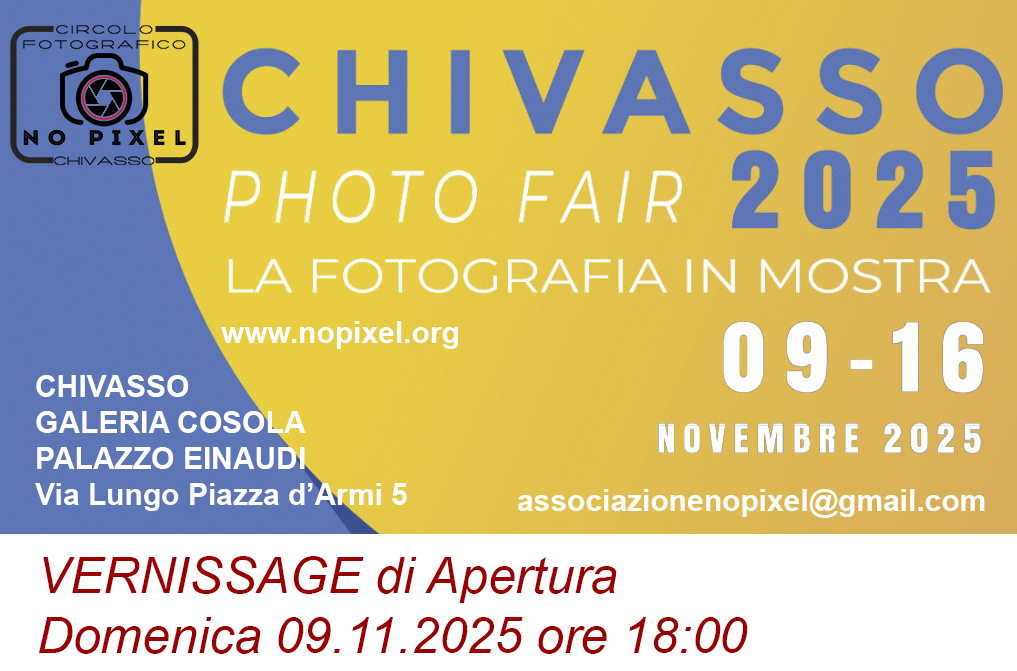 Il Circolo Fotografico No Pixel è lieto di invitarvi al vernissage di inaugurazione della Chivasso Photo Fair 2025!